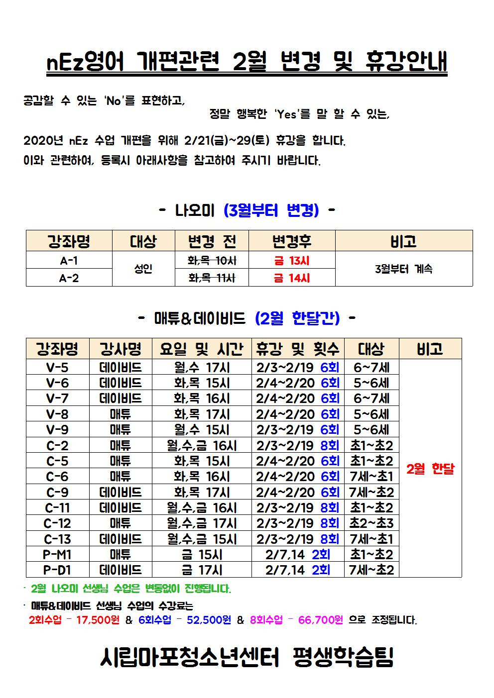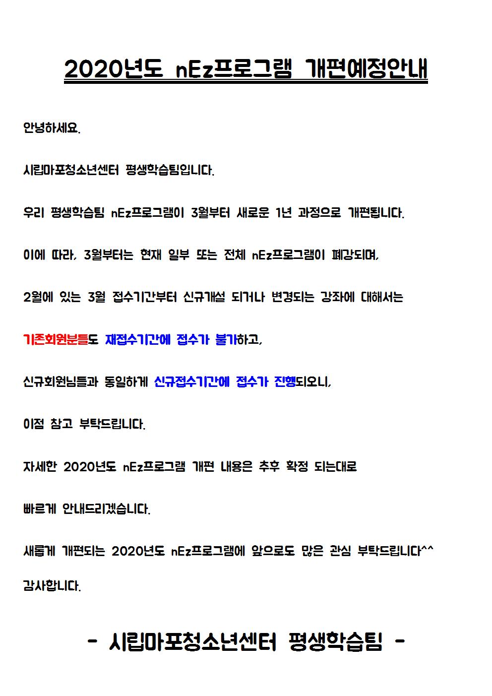 [¿î¿µ°ÁÂ] 2020³â nEz (¿ø¾î¹Î¿µ¾î) °³Æí°ü·Ã º¯°æ(Âü°í)»çÇ× ¹× ÈÞ°¾È³»