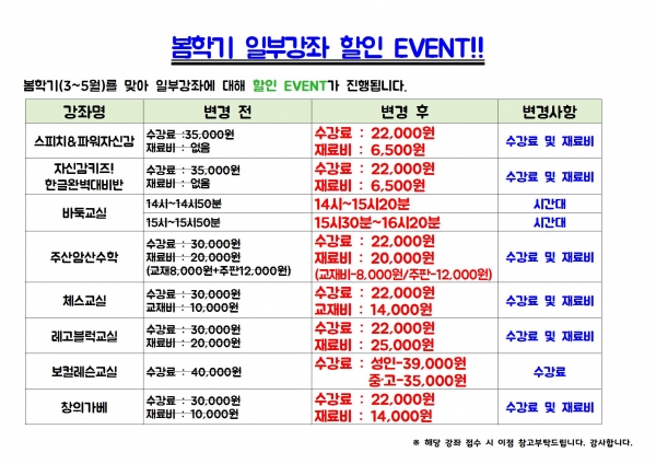 [¿î¿µ°ÁÂ] º½Çбâ¸ÂÀÌ ±³À°¹®ÈÇÁ·Î±×·¥ º¯°æ»çÇ× ¾Ë¸² (¼ö°·áÀÎÇÏ µî)
