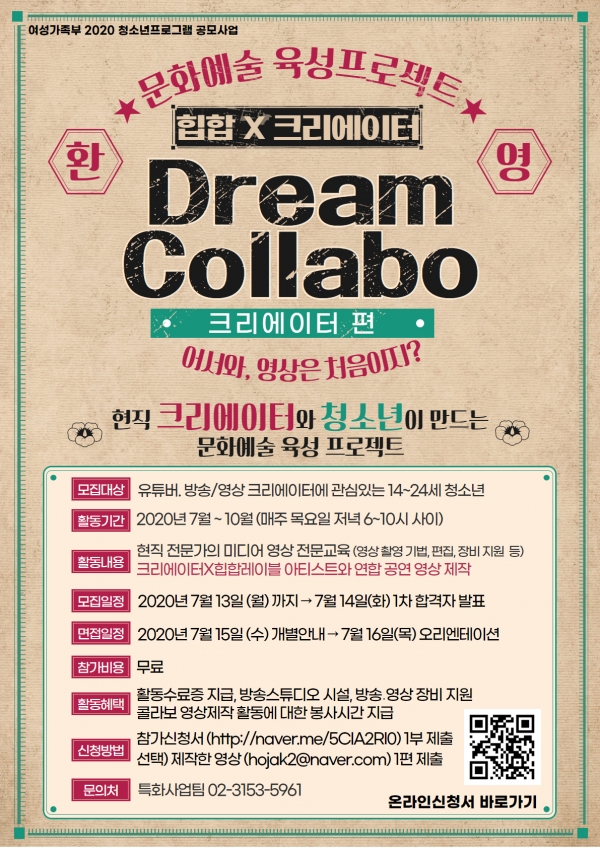 [û¼Ò³âȰµ¿] 2020³â û¼Ò³â¹®È¿¹¼úÇÁ·ÎÁ§Æ® µå¸²Äݶ󺸷¹À̼Ç: Å©¸®¿¡ÀÌÅÍÆí Ãß°¡ ¸ðÁý