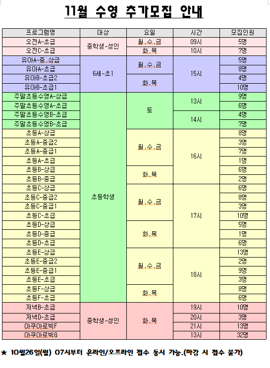 [¿î¿µ°ÁÂ] 11¿ù ¼ö¿µ Ãß°¡¸ðÁý ¾È³»