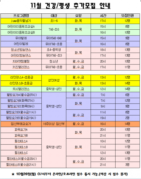 [¿î¿µ°ÁÂ] 11¿ù °Ç°&Æò»ýÇÁ·Î±×·¥ Ãß°¡¸ðÁý ¾È³»