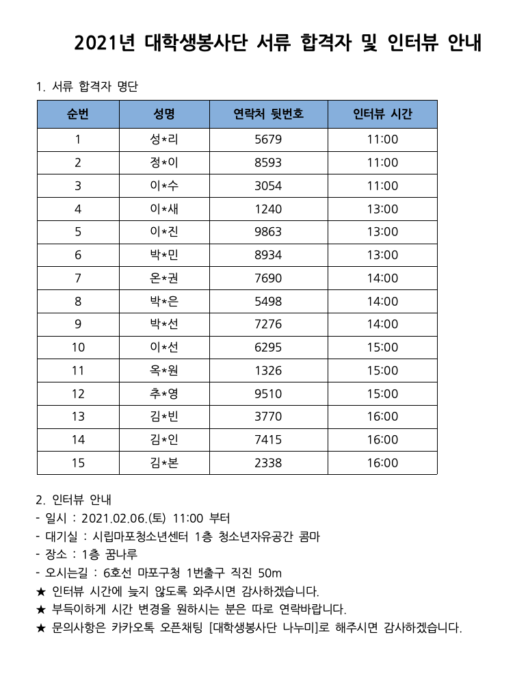 [û¼Ò³âȰµ¿] ¡Ú2020³â ´ëÇлýºÀ»ç´Ü ³ª´©¹Ì ¼·ù ÇÕ°ÝÀÚ ¹× ÀÎÅÍºä ¾È³»
