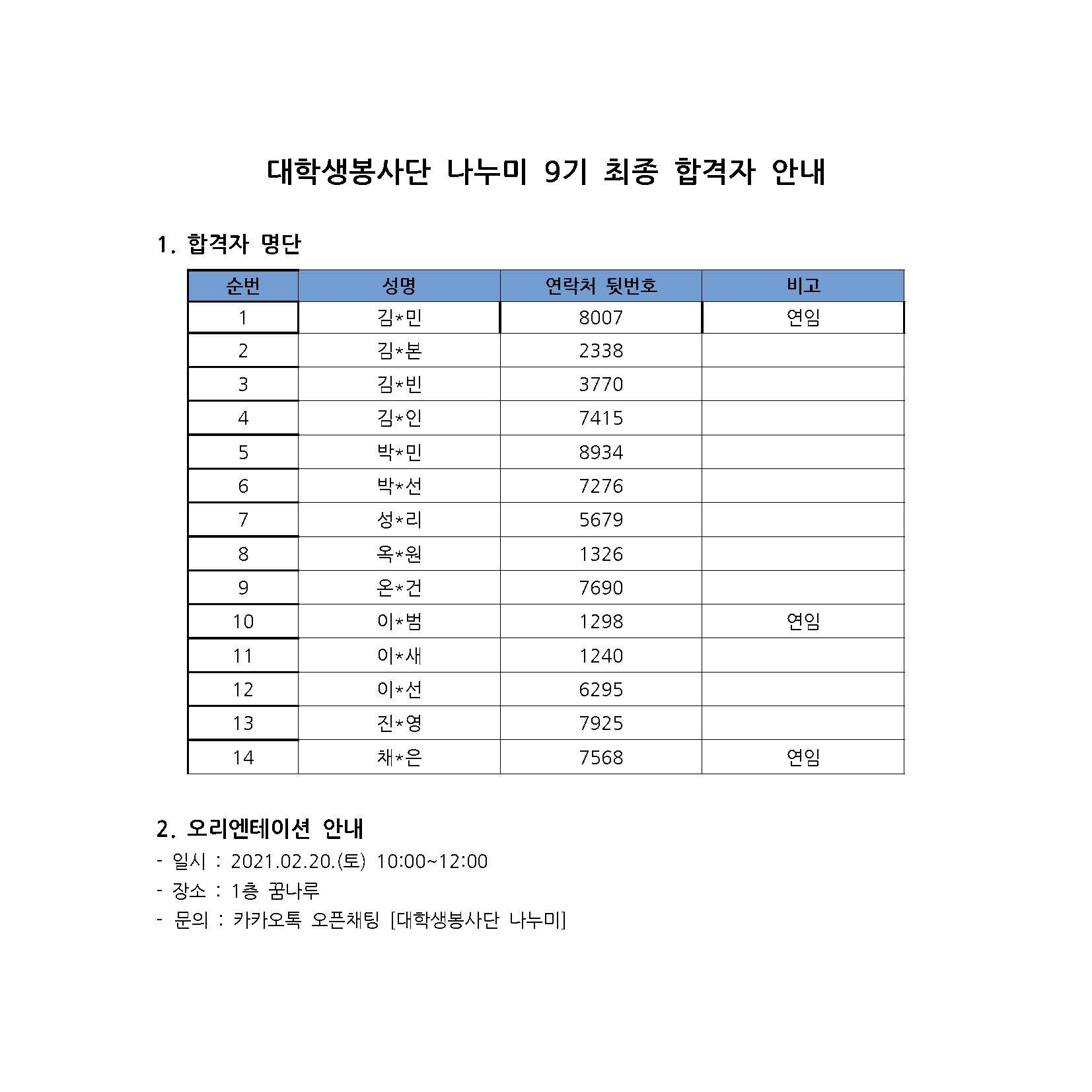 [û¼Ò³âȰµ¿] 2021³â ´ëÇлýºÀ»ç´Ü ³ª´©¹Ì ÃÖÁ¾ ÇÕ°ÝÀÚ ¾È³»