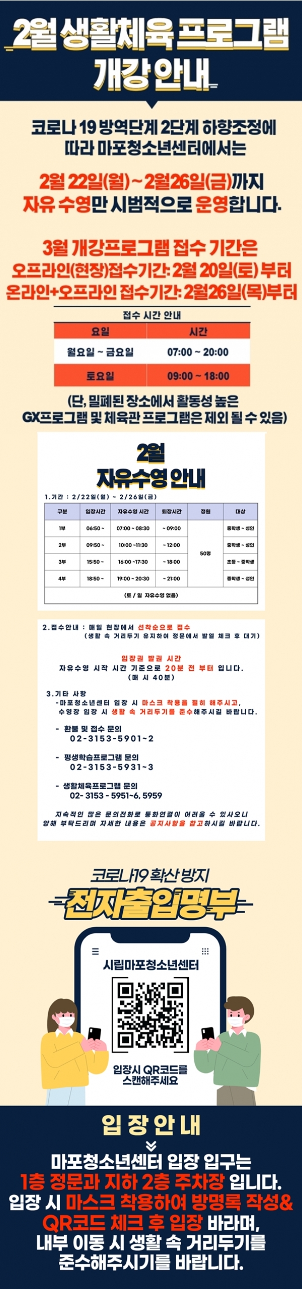 [¿î¿µ°ÁÂ] 2¿ù ÀÚÀ¯¼ö¿µ ¿î¿µ ¾È³» (2/22~26ÀÏ)