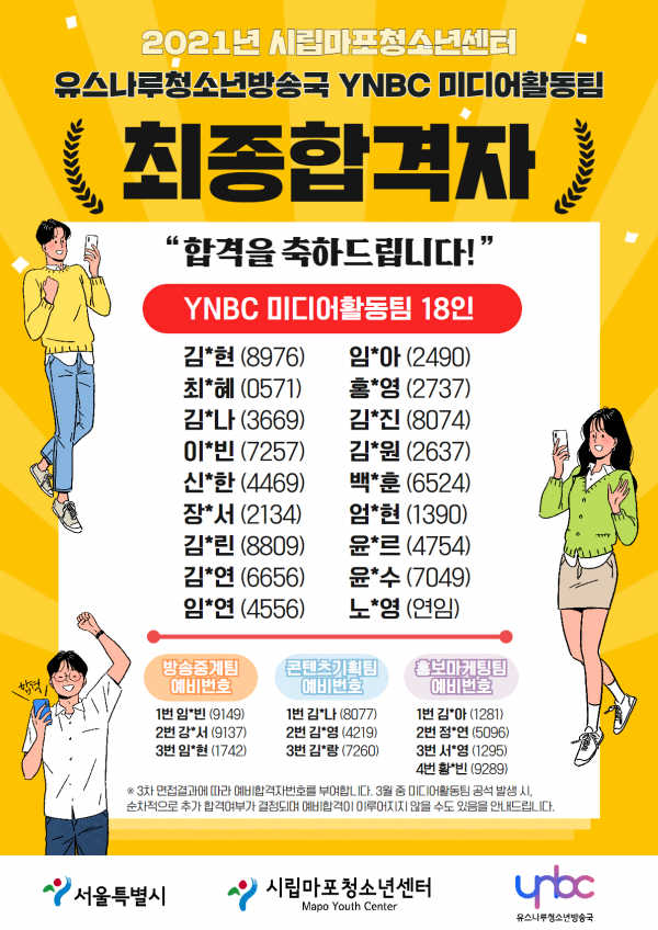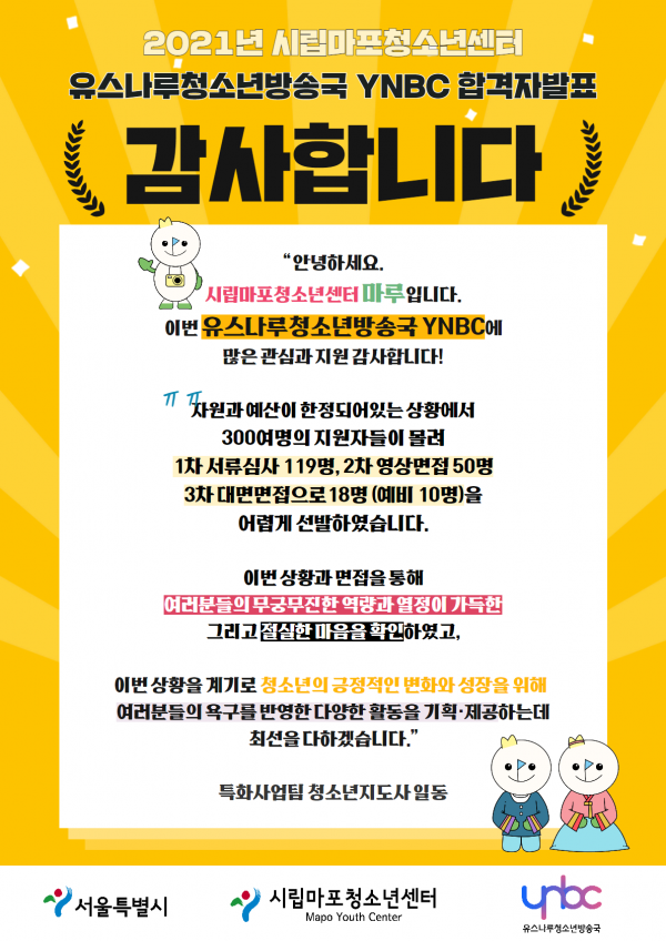 µåµð¾î ±â´Ù¸®°í ±â´Ù¸®´ø!! 2021³â À¯½º³ª·çû¼Ò³â¹æ¼Û±¹ YNBC¸¦ À̲ø¾î°¥ "¹Ìµð¾îȰµ¿ÆÀ" ÃÖÁ¾ ÇÕ°ÝÀÚ¸¦ ¹ßÇ¥ÇÕ´Ï´Ù.