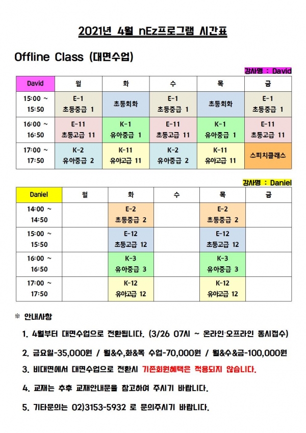 [¿î¿µ°ÁÂ] 2021³â nEzÇÁ·Î±×·¥ ´ë¸é Àüȯ ¹× ½Ã°£Ç¥ ¾È³»