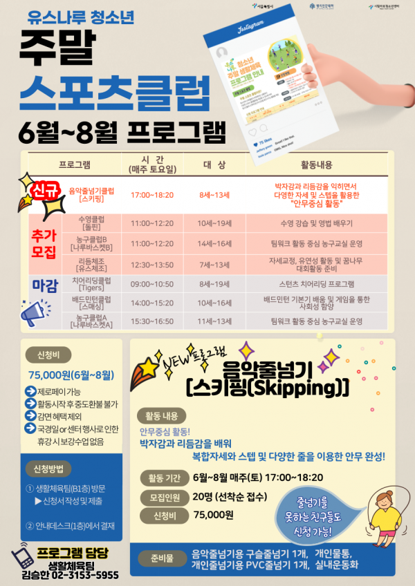 [¿î¿µ°ÁÂ] ÁÖ¸» ½ºÆ÷Ã÷ Ŭ·´ 6¿ù~8¿ù ÇÁ·Î±×·¥ ¸ðÁý ¹× ½Å±Ô ÇÁ·Î±×·¥ È«º¸