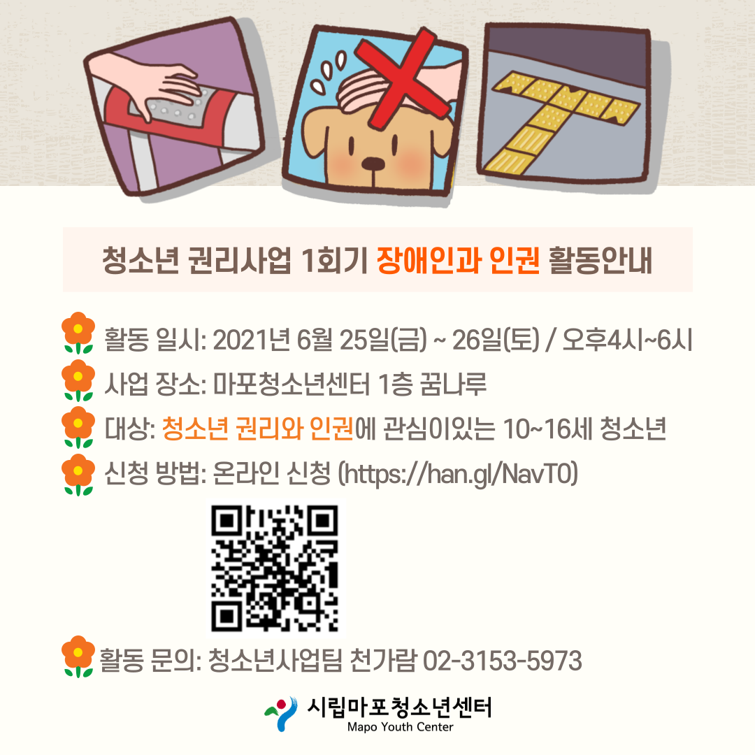 🌷ÀϽÃ: 2021.06.25.(±Ý) ~ 06.26.(Åä) / 16:00 ~ 18:00 🌷Àå¼Ò: ½Ã¸³¸¶Æ÷û¼Ò³â¼¾ÅÍ ³» 🌷¸ðÁý´ë»ó: Ãʵî 3Çгâ~ÁßÇлý / 15¸í 🌷½Åû: ¿Â¶óÀνÅû>>> https://han.gl/NavT0 🌷¹®ÀÇ»çÇ×: û¼Ò³âÁöµµ»ç õ°¡¶÷ 02-3153-5973