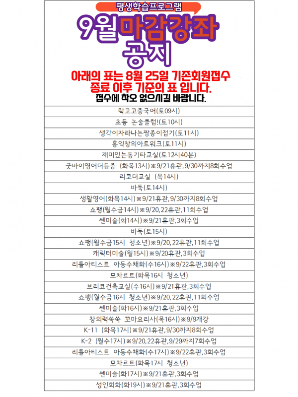 [] (Æò»ýÇнÀ/»ýȰüÀ°) 2021³â 9¿ù ±³À°¹®È ¡¤ »ýȰüÀ° ÇÁ·Î±×·¥ ¸¶°¨ °Á ¾È³»