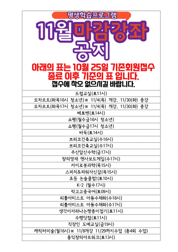 [] (Æò»ýÇнÀ/»ýȰüÀ°) 2021³â 11¿ù ±³À°¹®È ¡¤ »ýȰüÀ° ÇÁ·Î±×·¥ ¸¶°¨ °Á ¾È³»