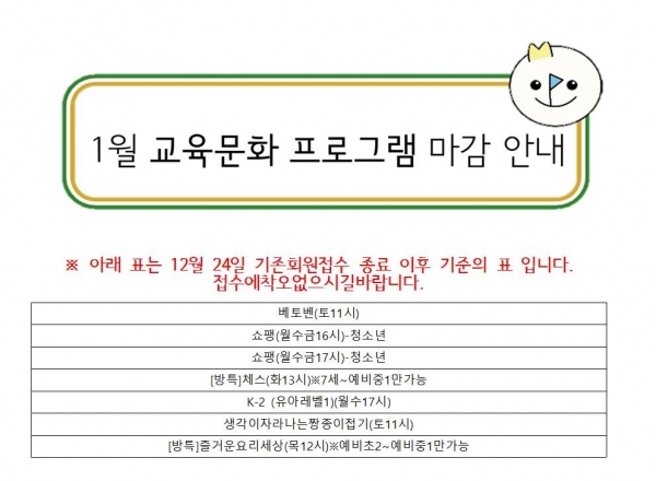 [] 20212³â 1¿ù ±³À°¹®È ¡¤ »ýȰüÀ° ÇÁ·Î±×·¥ ¸¶°¨ °Á ¾È³»