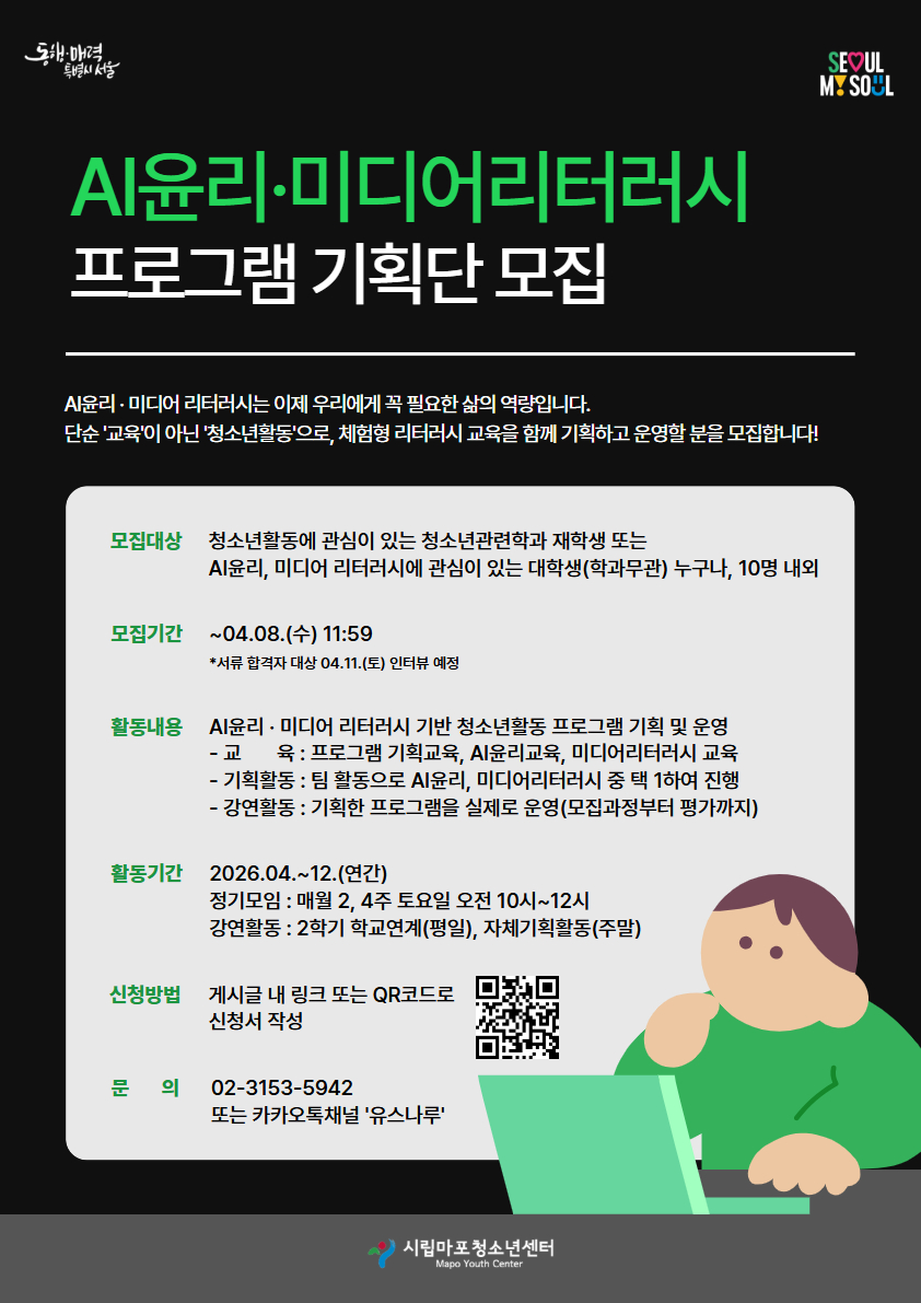 AIÀ±¸® ¡¤ ¹Ìµð¾î ¸®ÅÍ·¯½Ã¸¦ ÁÖÁ¦·Î Ã»¼Ò³â°ú ÇÔ²² Ȱµ¿Çü ÇÁ·Î±×·¥À» ¸¸µé¾î°¥ ¿¹ºñû¼Ò³âÁöµµ»ç¸¦ ¸ðÁýÇÕ´Ï´Ù.