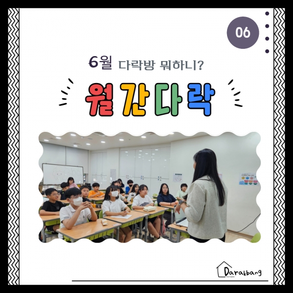 2024³â 6¿ù ¿ù°£ ´Ù¶ô ¹èÆ÷ À¯ÇÏ~! ´Ù¶ô¹æÀÔ´Ï´Ù! ´Ù¶ô¹æÀÇ 6¿ùÀ» Àå½ÄÇÑ ´Ù¾çÇÑ È°µ¿µé·Î ±¸¼ºµÈ µû²öµû²öÇÑ ¿ù°£´Ù¶ôÀÌ ¹èÆ÷µÇ¾ú´Âµ¥¿ä~ ´Ù¶ô¹æÀÇ 6¿ù ¼Ò½ÄÀÌ ±Ã±ÝÇÏ´Ù¸é?! ³×À̹ö ºí·Î±×¿¡¼ È®ÀÎ °¡´ÉÇÏ´ä´Ï´Ù~!