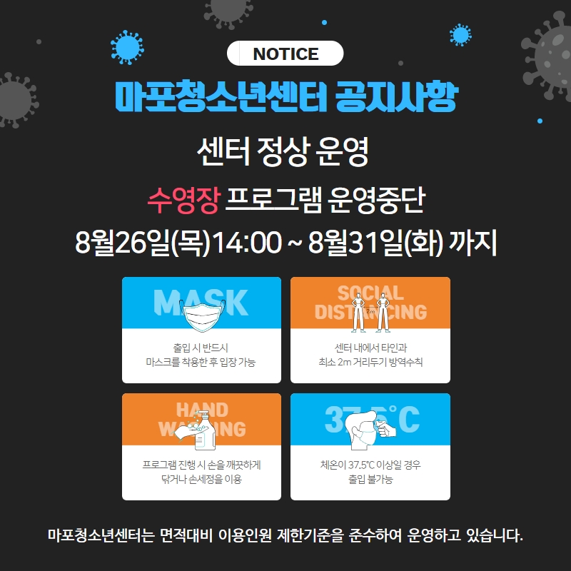 Äڷγª19 È®ÁøÀÚ ¹æ¹®À¸·Î ÀÎÇÑ ¼ö¿µÀå ÇÁ·Î±×·¥À» ¿î¿µÁß´Ü ÇÏ°Ô µÇ¾ú½À´Ï´Ù.