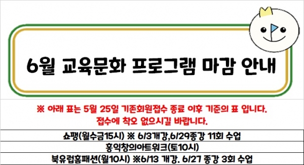 6¿ù ±³À°¹®È&»ýȰüÀ°ÇÁ·Î±×·¥ ¸¶°¨°ÁÂ