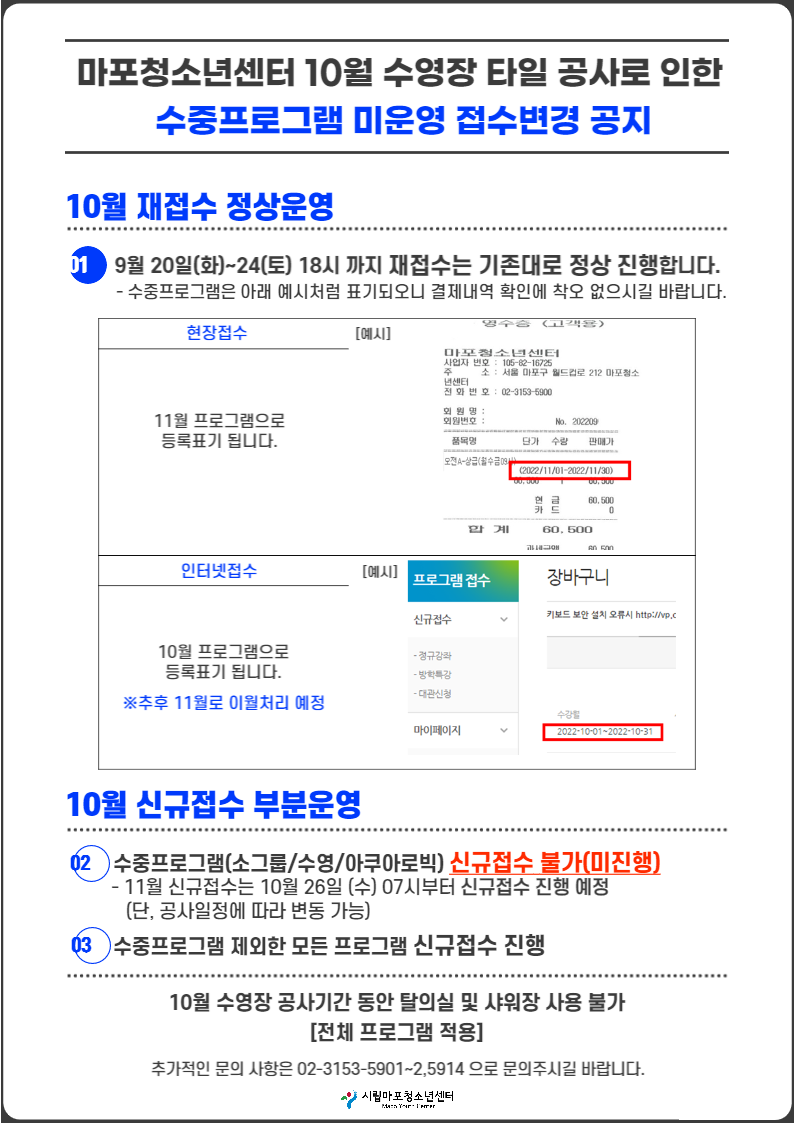 10¿ù ÇÑ ´Þ ¼öÁß ÇÁ·Î±×·¥ ¿î¿µÇÏÁö ¾Ê½À´Ï´Ù.°ø»ç±â°£: 10¿ù 01ÀÏ(Åä) ~ 10¿ù 31ÀÏ(¿ù) ¡Ø°ø»çÀÏÁ¤¿¡ µû¶ó º¯µ¿ °¡´É¡Ø