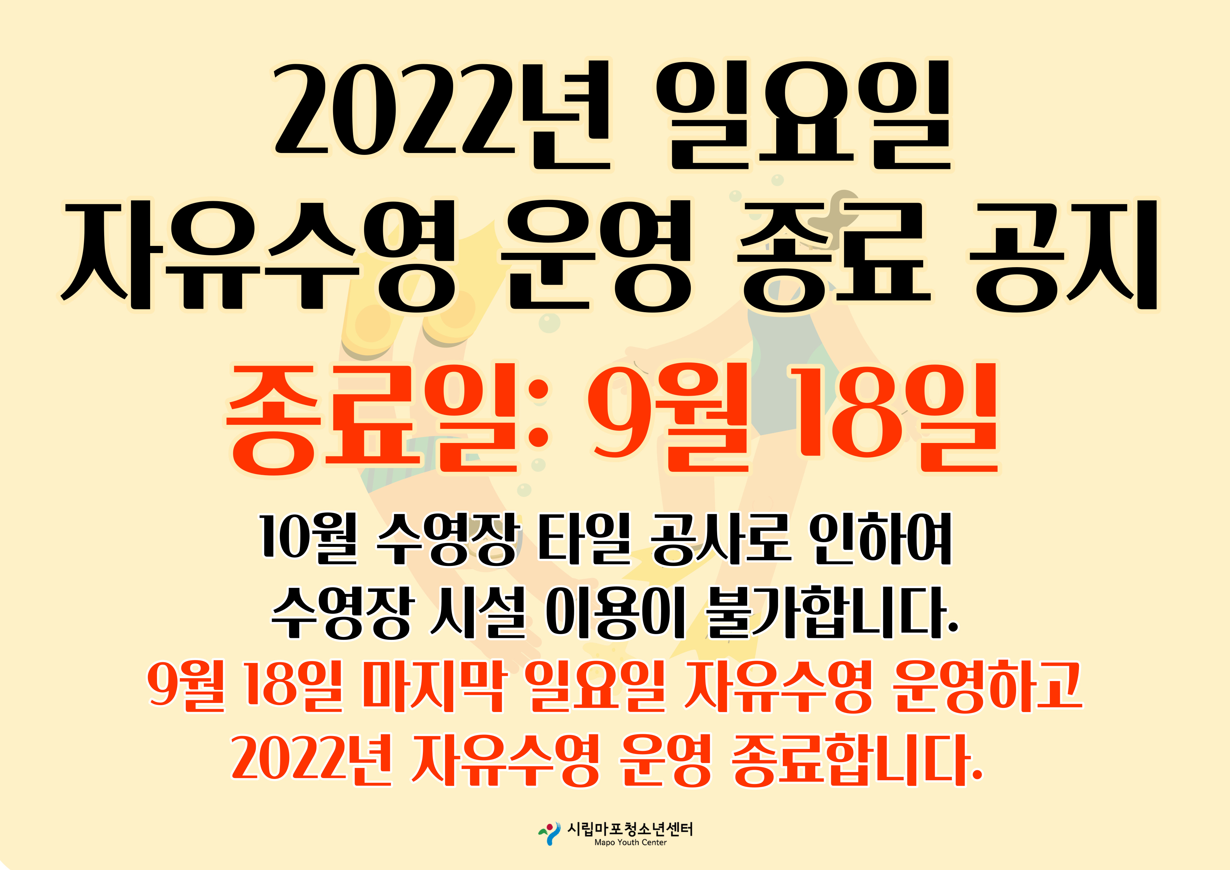 2022³â ÀÏ¿äÀÏ ÀÚÀ¯¼ö¿µ ¿î¿µ Á¾·á °øÁö(Á¾·áÀÏ: 9¿ù 18ÀϱîÁö ¿î¿µ)