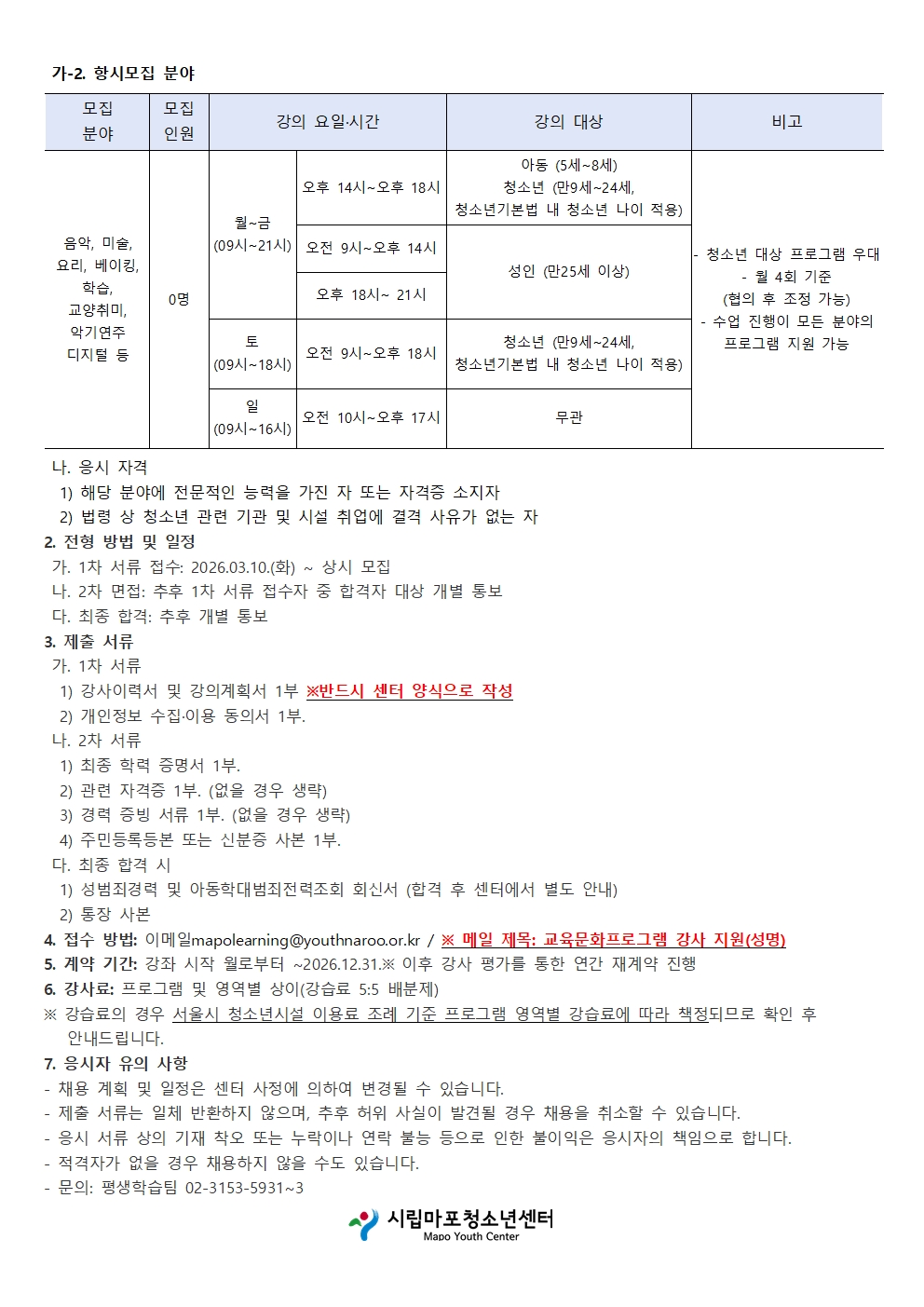 [ä¿ë] 2026³â ½Ã¸³¸¶Æ÷û¼Ò³â¼¾ÅÍ Æò»ýÇнÀÆÀ ±³À°¹®ÈÇÁ·Î±×·¥ °»ç °ø°³Ã¤¿ë