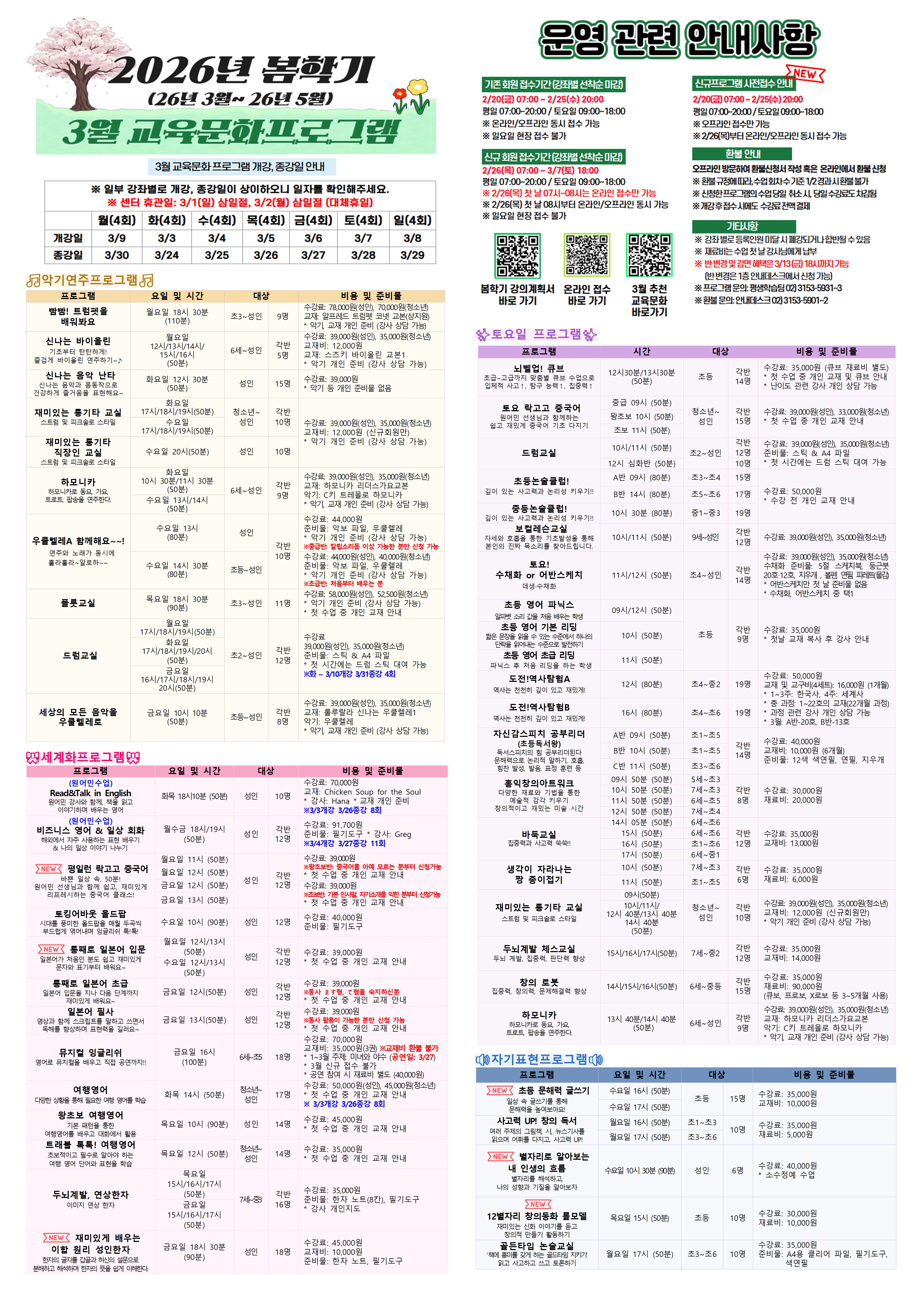 | [2026³â º½Çбâ] 3¿ù ±³À°¹®È&»ýȰüÀ° ÇÁ·Î±×·¥ Àü´ÜÁö ¾È³» | |||