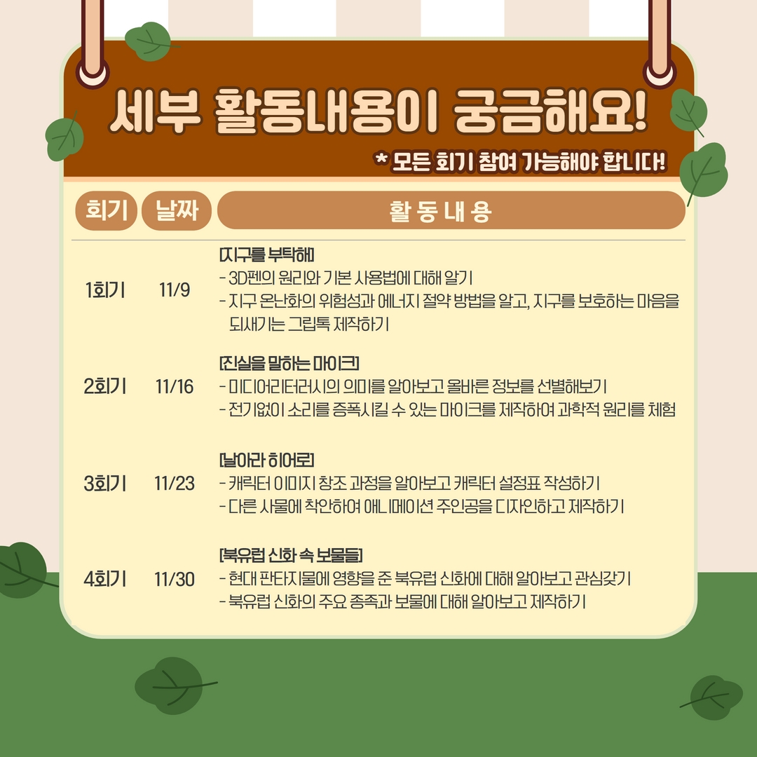 10¿ù µ¥Àϸ®Å¬·¡½º¿¡ Âü¿©ÇÏÁö ¸øÇÑ Ã»¼Ò³âµéÀ» À§ÇØ °°Àº ¼ö¾÷À¸·Î ´Ù½Ã µ¹¾Æ¿Ô½À´Ï´Ù!