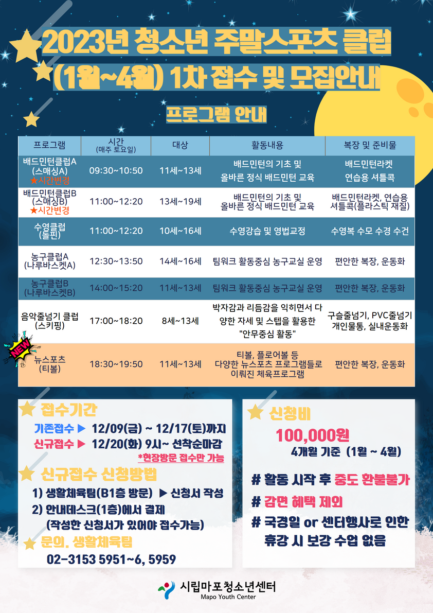 [¿î¿µ°ÁÂ] [»ýȰüÀ°] 2023³â û¼Ò³âÁÖ¸»½ºÆ÷Ã÷Ŭ·´ (1¿ù~4¿ù)¿î¿µ ¹× ¸ðÁý¾È³»