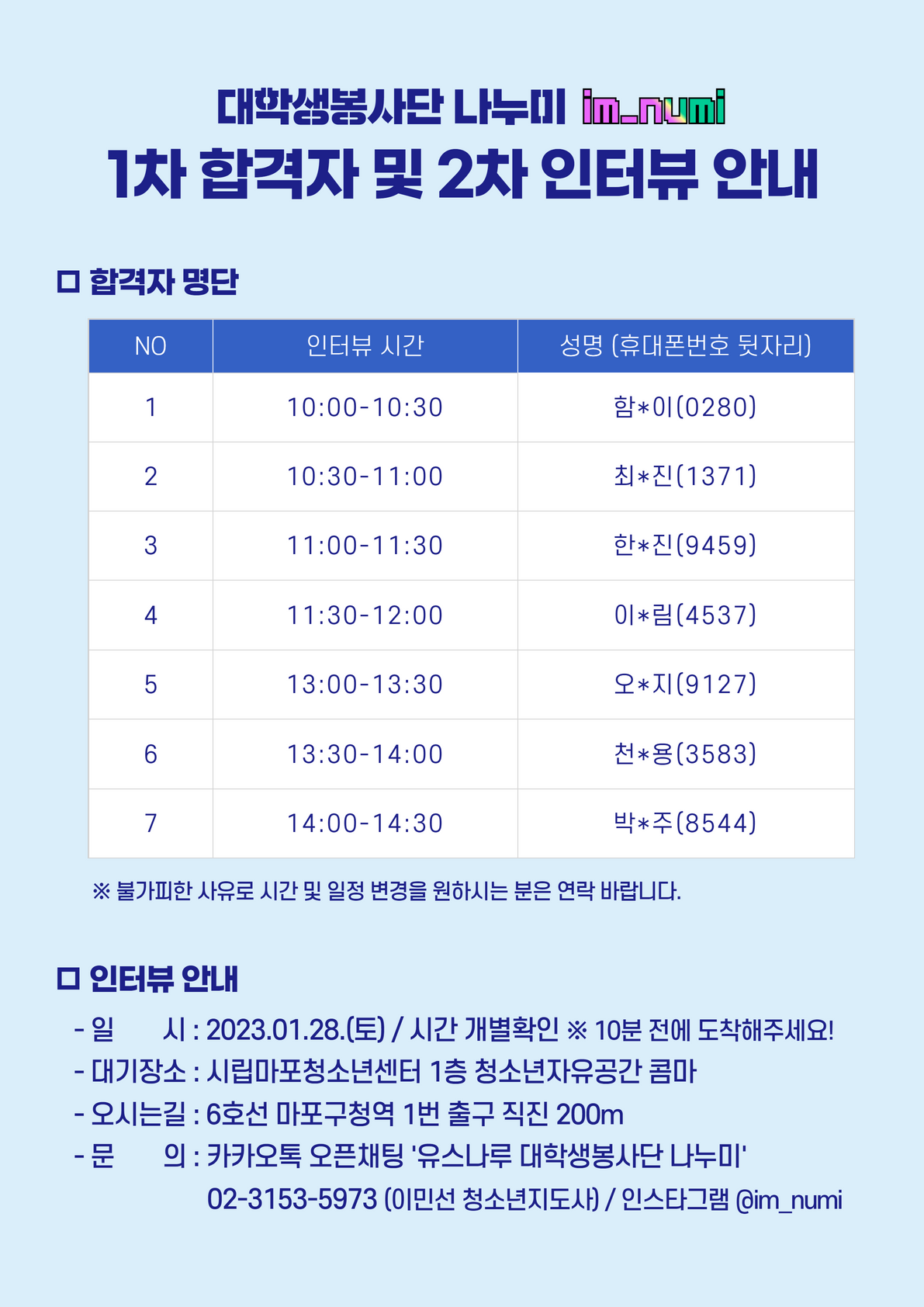 [û¼Ò³âȰµ¿] 2023³â ´ëÇлýºÀ»ç´Ü ³ª´©¹Ì 1Â÷ ÇÕ°ÝÀÚ ¹× 2Â÷ ÀÎÅÍºä ´ë»óÀÚ ¹ßÇ¥