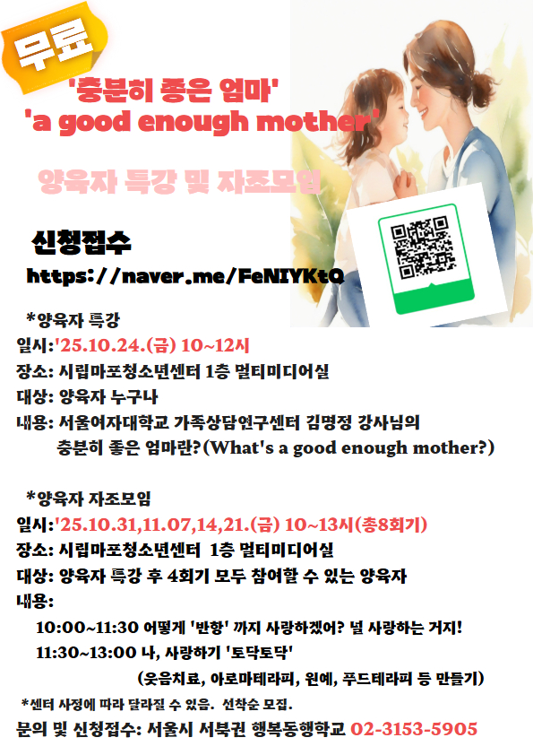 ¾çÀ°ÀÚ Æ¯°(10/24)- °¡Á·»ó´ãÀü¹®°¡°¡ ¸»ÇÏ´Â ÃæºÐÈ÷ ÁÁÀº¾ö¸¶(¡®a good enough mother¡¯)¶õ?