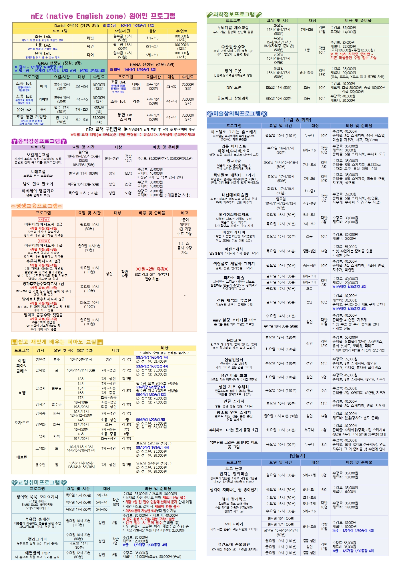 | ´ÙÀ½±Û | [2025³â °Ü¿ïÇбâ] 12¿ù ±³À°¹®È&»ýȰüÀ° ÇÁ·Î±×·¥ Àü´ÜÁö ¾È³» | ||