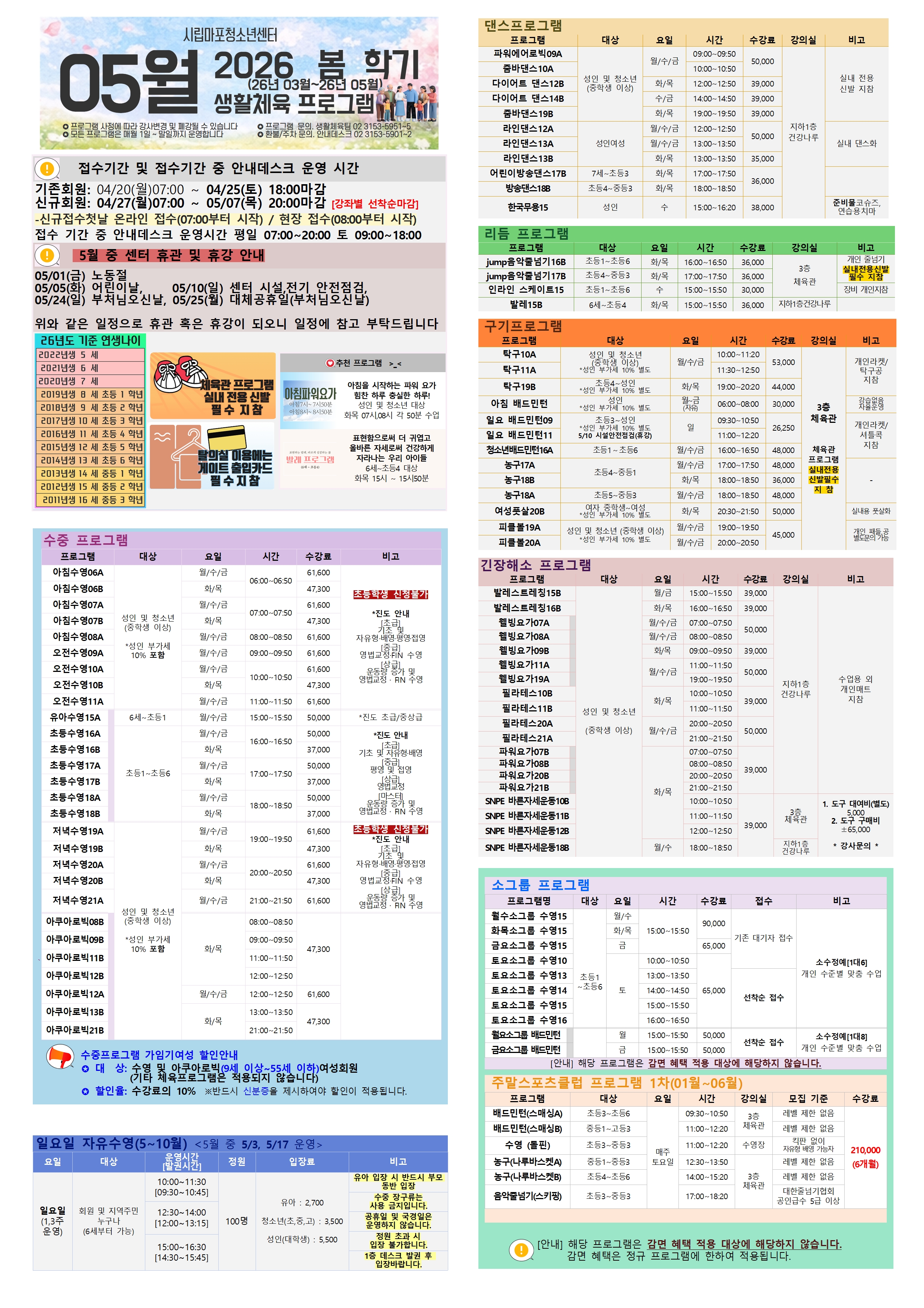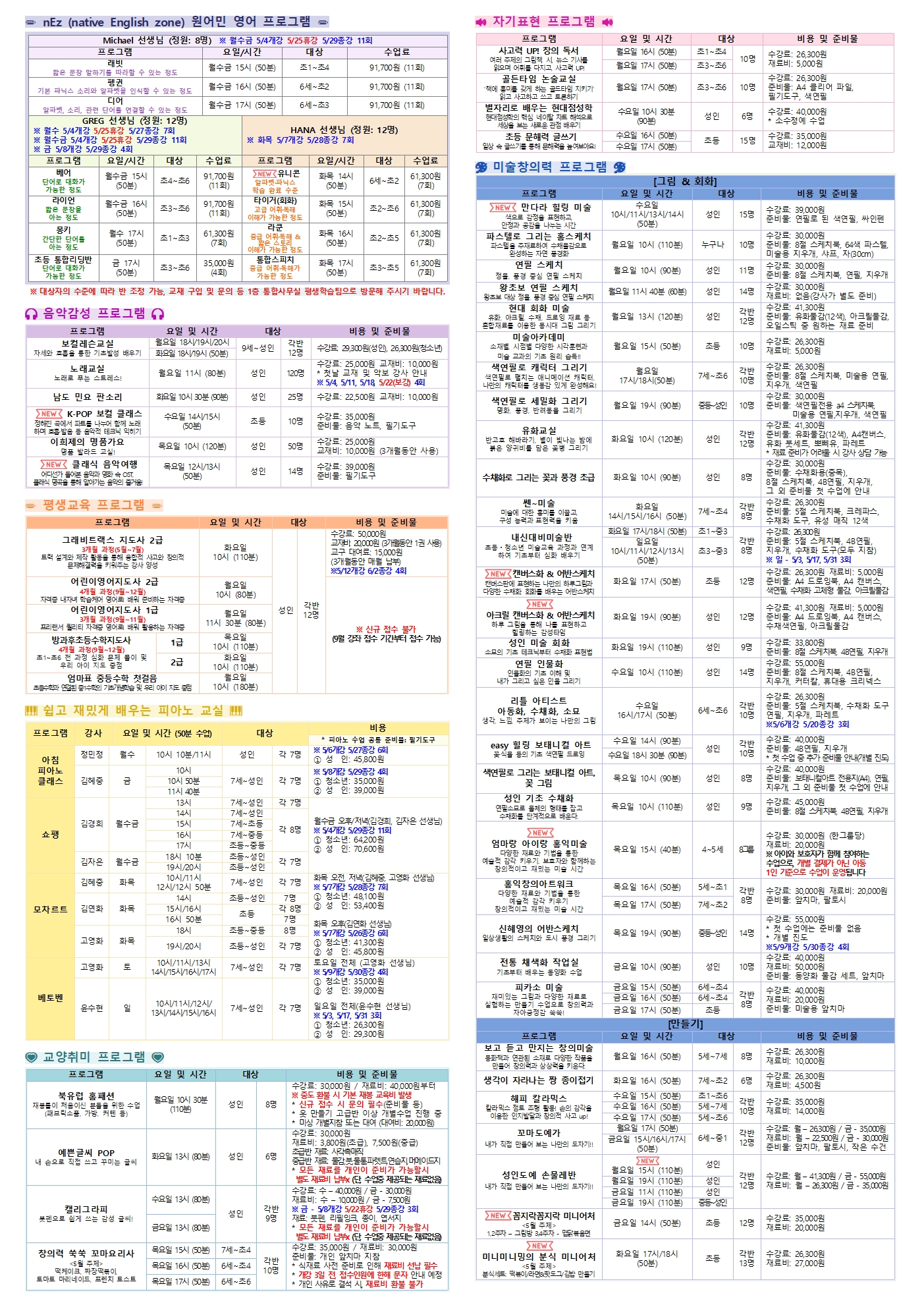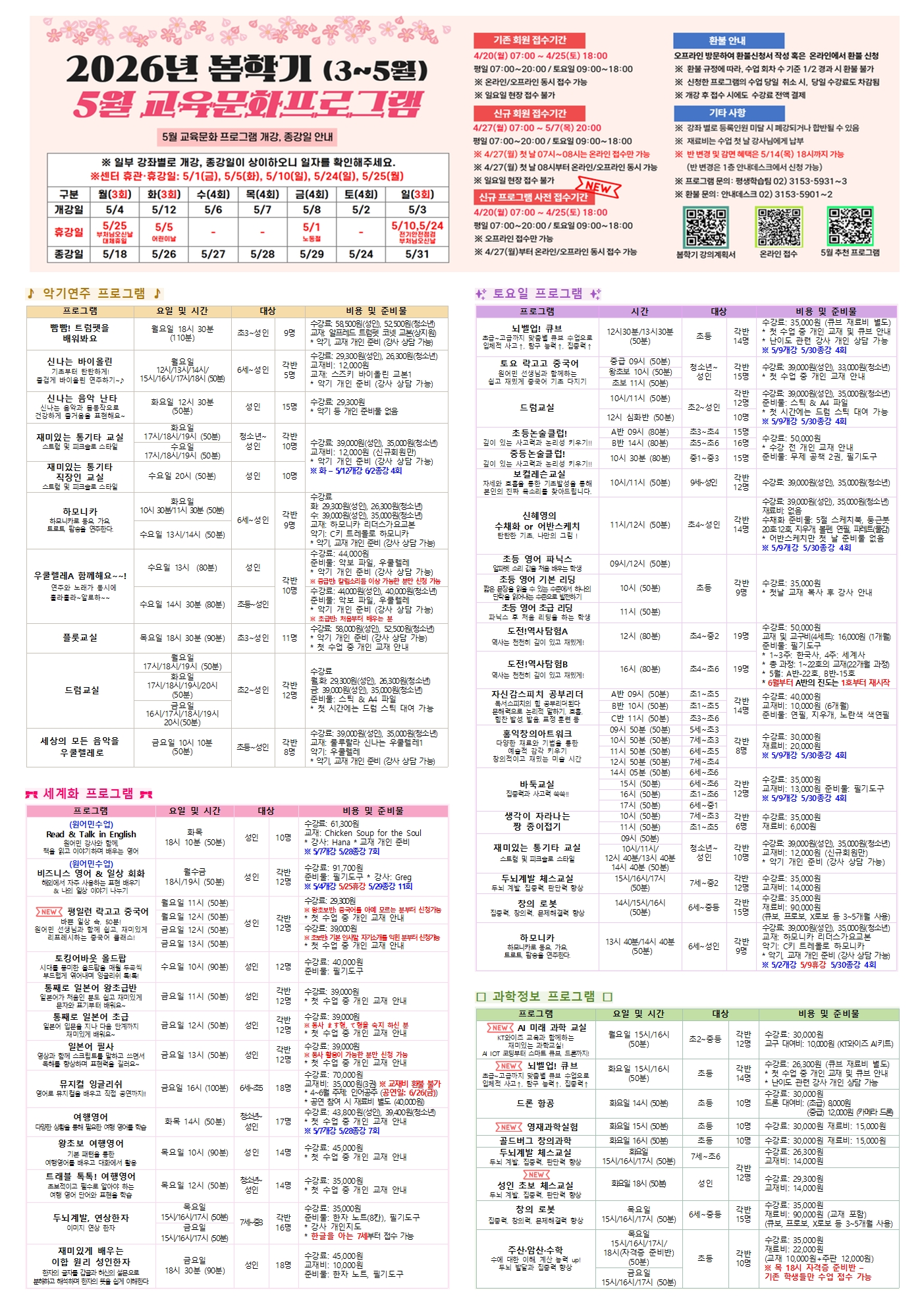 [2026³â º½Çбâ] 5¿ù ±³À°¹®È&»ýȰüÀ° ÇÁ·Î±×·¥ Àü´ÜÁö ¾È³»