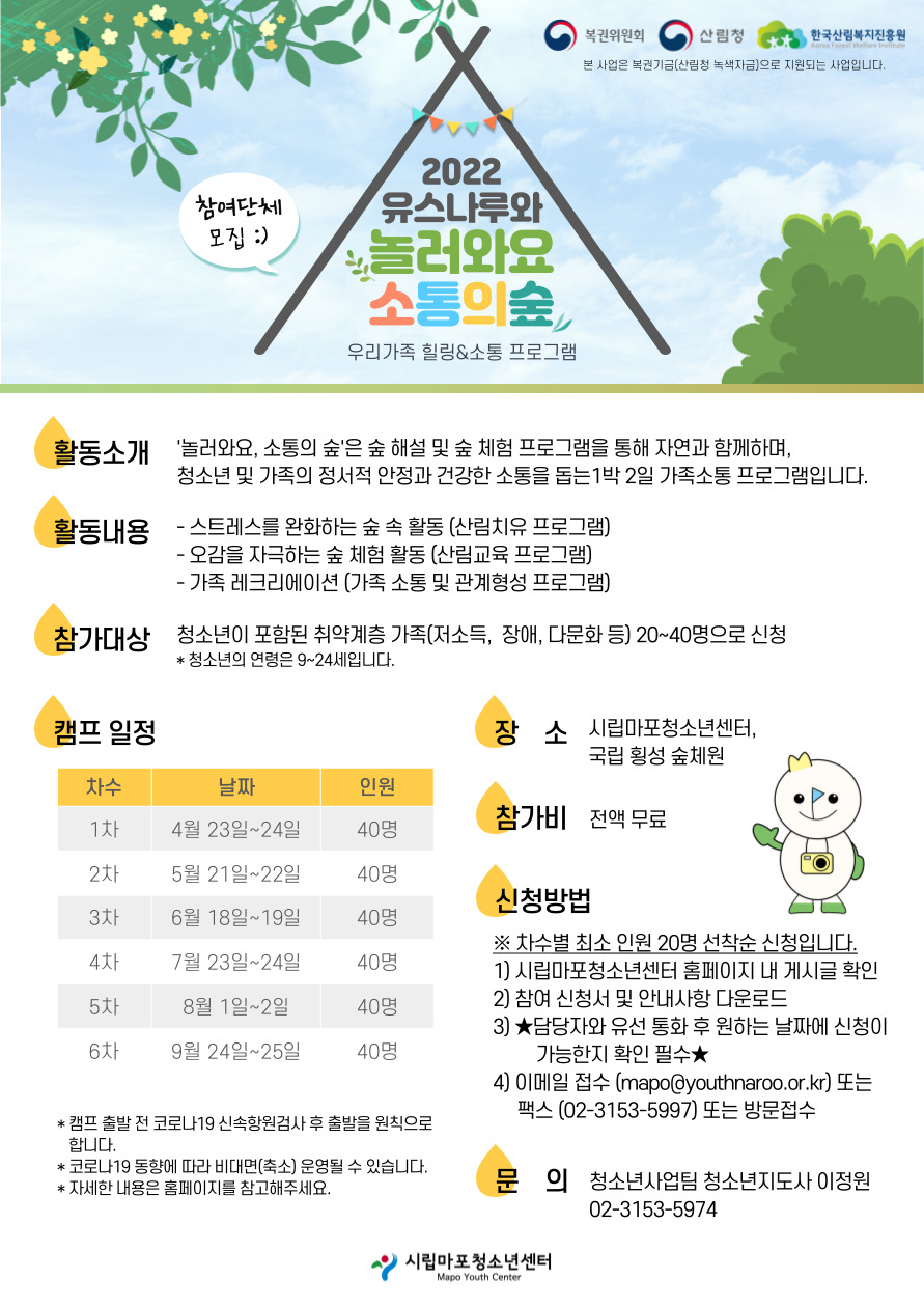 | ÀÌÀü±Û | 2022³â ¸¶Æ÷±¸ û¼Ò³â¸¶À»ÀÚÄ¡À§¿øÈ¸ '¶ì¾Ñ' û¼Ò³â Ãß°¡¸ðÁý (~3¿ù »ó½Ã) | ||