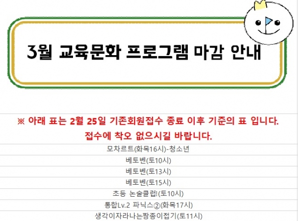 [¿î¿µÁö¿ø] 3¿ù ±³À°¹®È&»ýȰüÀ°ÇÁ·Î±×·¥ ¸¶°¨°ÁÂ