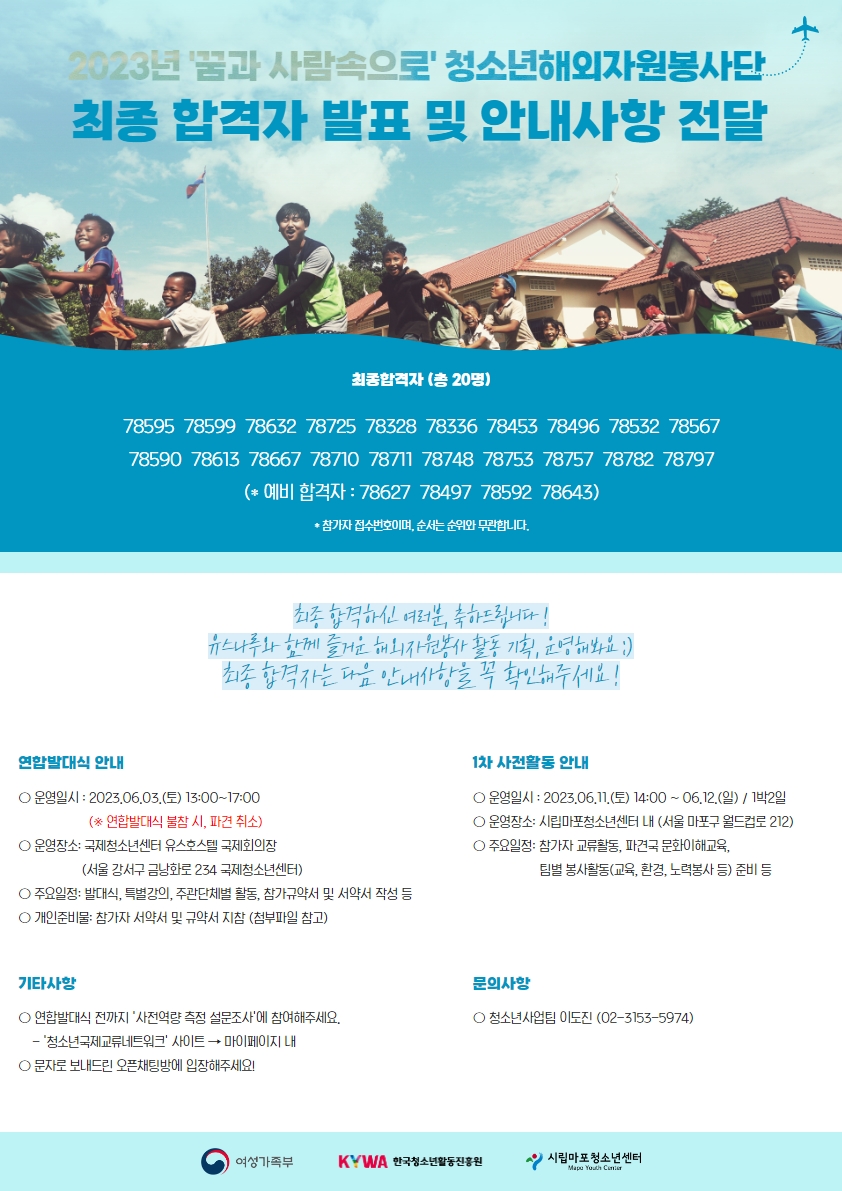 | ÆÄÀÏ÷ºÎ | 2023³â ²Þ°ú »ç¶÷¼ÓÀ¸·Î û¼Ò³âÇØ¿ÜÀÚ¿øºÀ»ç´Ü ÃÖÁ¾ ÇÕ°ÝÀÚ ¹ßÇ¥ ¹× ÃßÈÄ ÀÏÁ¤ ¾È³».hwp | |||||