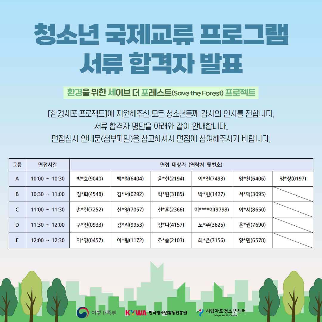 | ÆÄÀÏ÷ºÎ | [½Ã¸³¸¶Æ÷û¼Ò³â¼¾ÅÍ] 2023³â û¼Ò³â ±¹Á¦±³·ù ÇÁ·Î±×·¥ Áö¿ø»ç¾÷ ¼·ù ÇÕ°ÝÀÚ ¹ßÇ¥ ¹× ¸éÁ¢½É»ç ¾È³»¹®.hwp | |||||