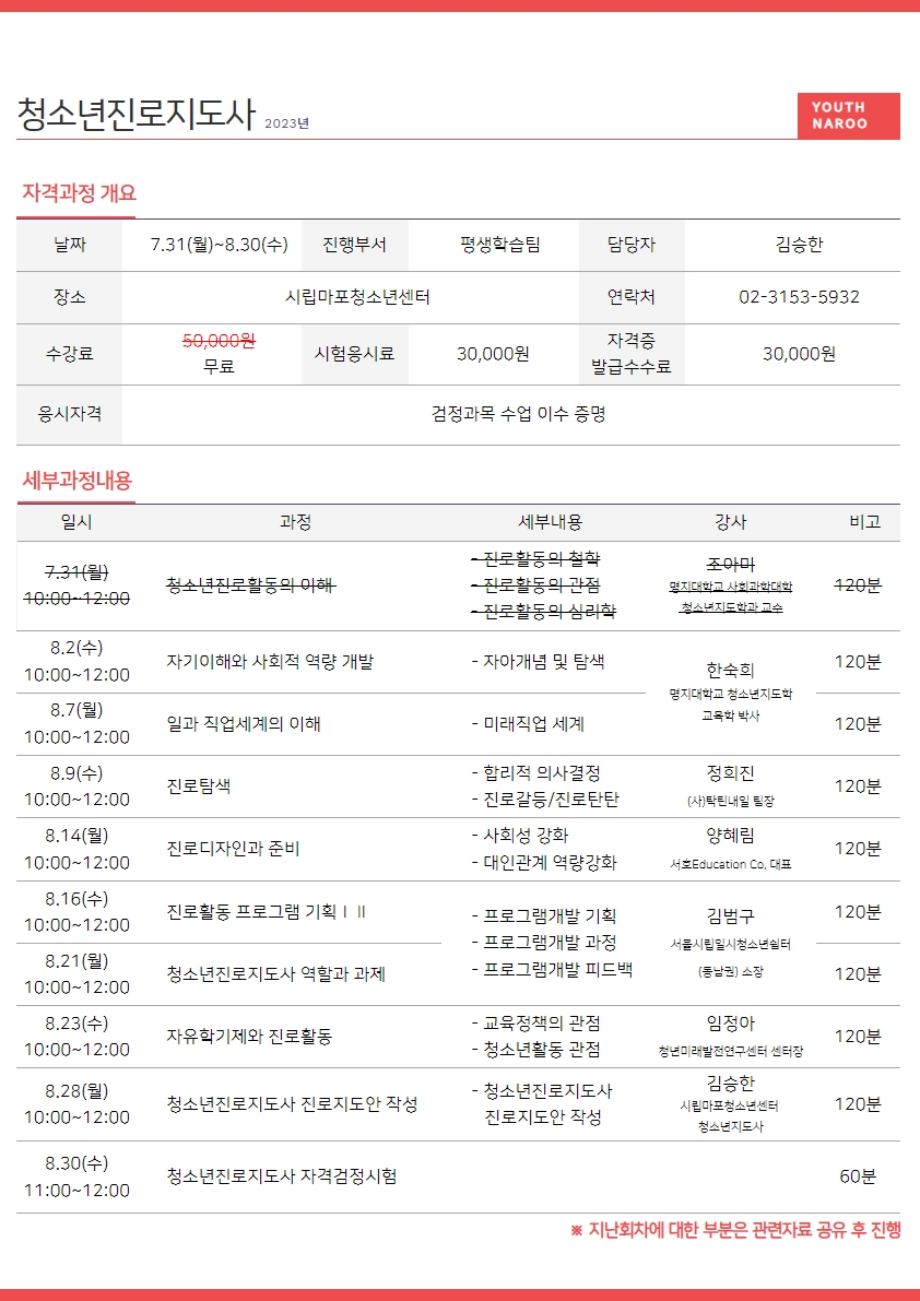 [¿î¿µ°ÁÂ] 2023³â û¼Ò³âÁø·ÎÁöµµ»ç ÀڰݰúÁ¤ Âü°¡¾È³»(¼±Âø¼ø)