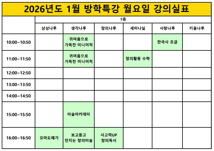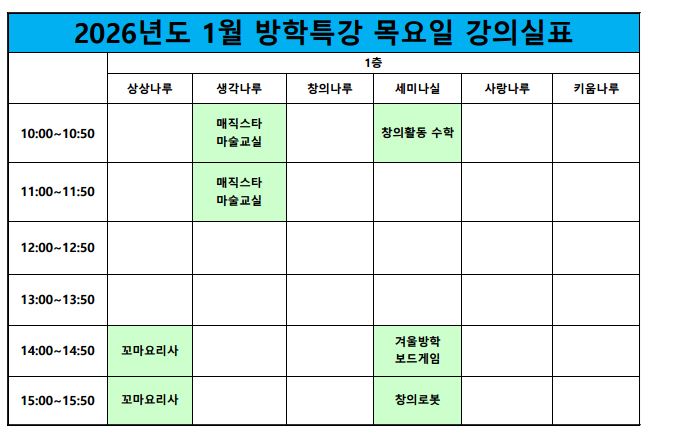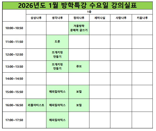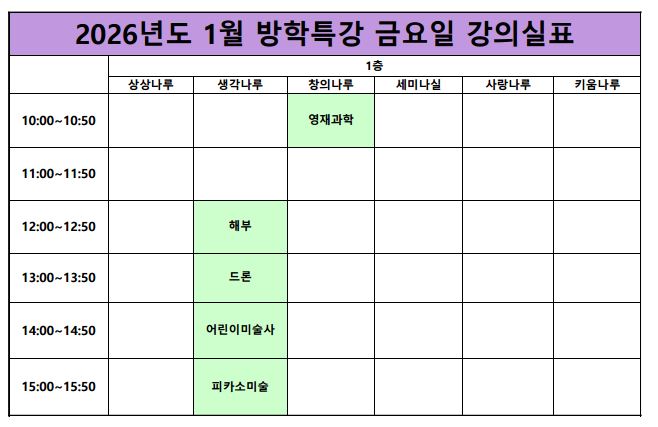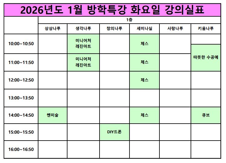 [¿î¿µ°ÁÂ] 2026³â 1¿ù ±³À°¹®È °Ü¿ï¹æÇÐÆ¯° °ÀÇ½Ç ¾È³»