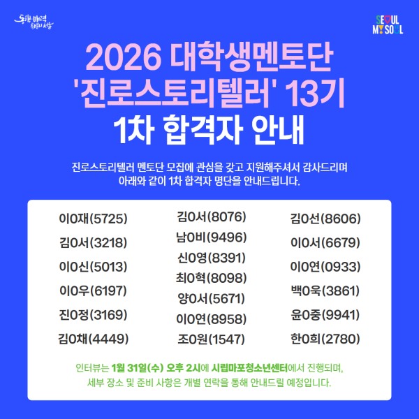 ÀÎÅͺä´Â 1¿ù 31ÀÏ(¼ö) ¿ÀÈÄ 2½Ã¿¡ ½Ã¸³¸¶Æ÷û¼Ò³â¼¾ÅÍ¿¡¼ ÁøÇàµÇ¸ç, ¼¼ºÎ Àå¼Ò ¹× Áغñ »çÇ×Àº °³º° ¿¬¶ôÀ» ÅëÇØ ¾È³»µå¸± ¿¹Á¤ÀÔ´Ï´Ù.