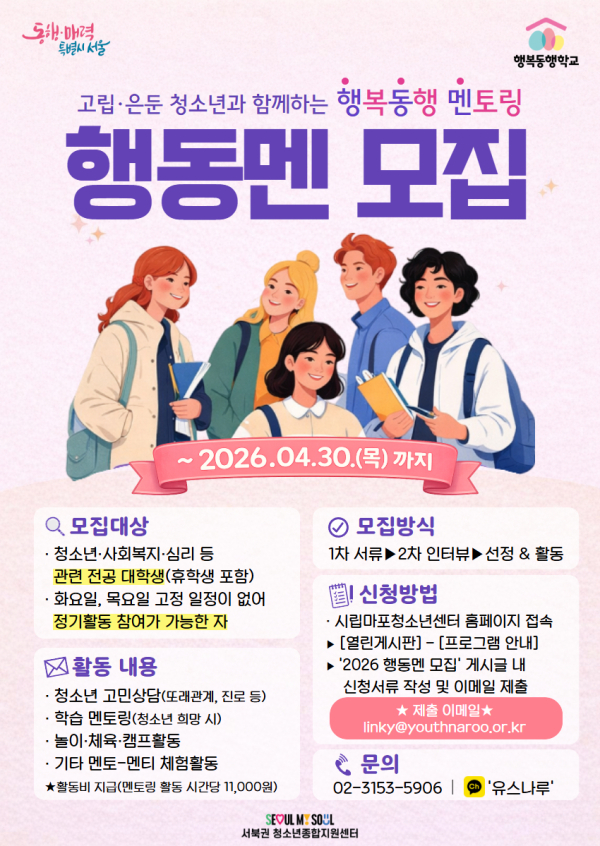 | ÆÄÀÏ÷ºÎ | ¸ðÁý Æ÷½ºÅÍ.jpg 2026 ¼ºÏ±Ç Çູµ¿ÇàÇб³ [Çൿ¸à] ÇÁ·Î±×·¥ ¾È³» ¹× ½Åû¼.hwp | |||||