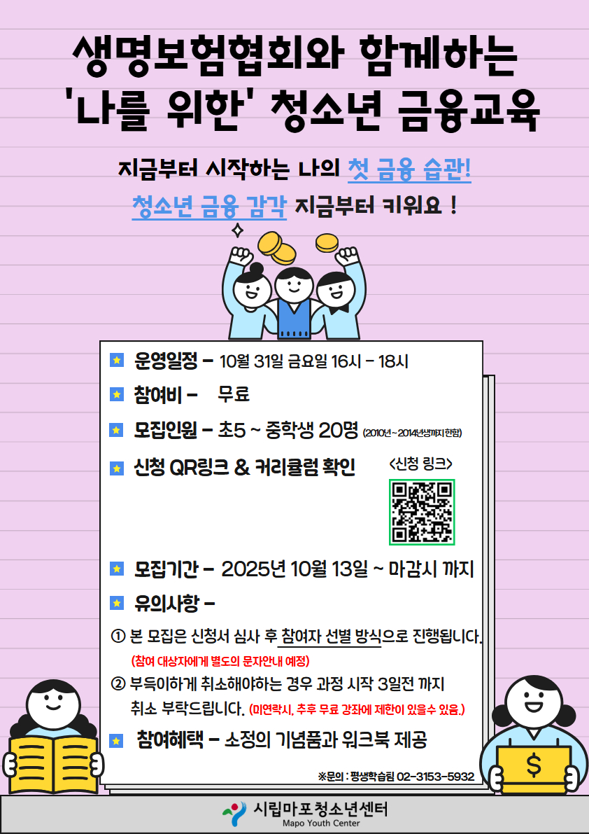 [¿î¿µ°ÁÂ] 2025³â 10¿ù Æò»ýµ¥ÀÌ[³ª¸¦ À§ÇÑ Ã»¼Ò³â ±ÝÀ¶±³À°] ½ÅûÀÚ ¸ðÁý