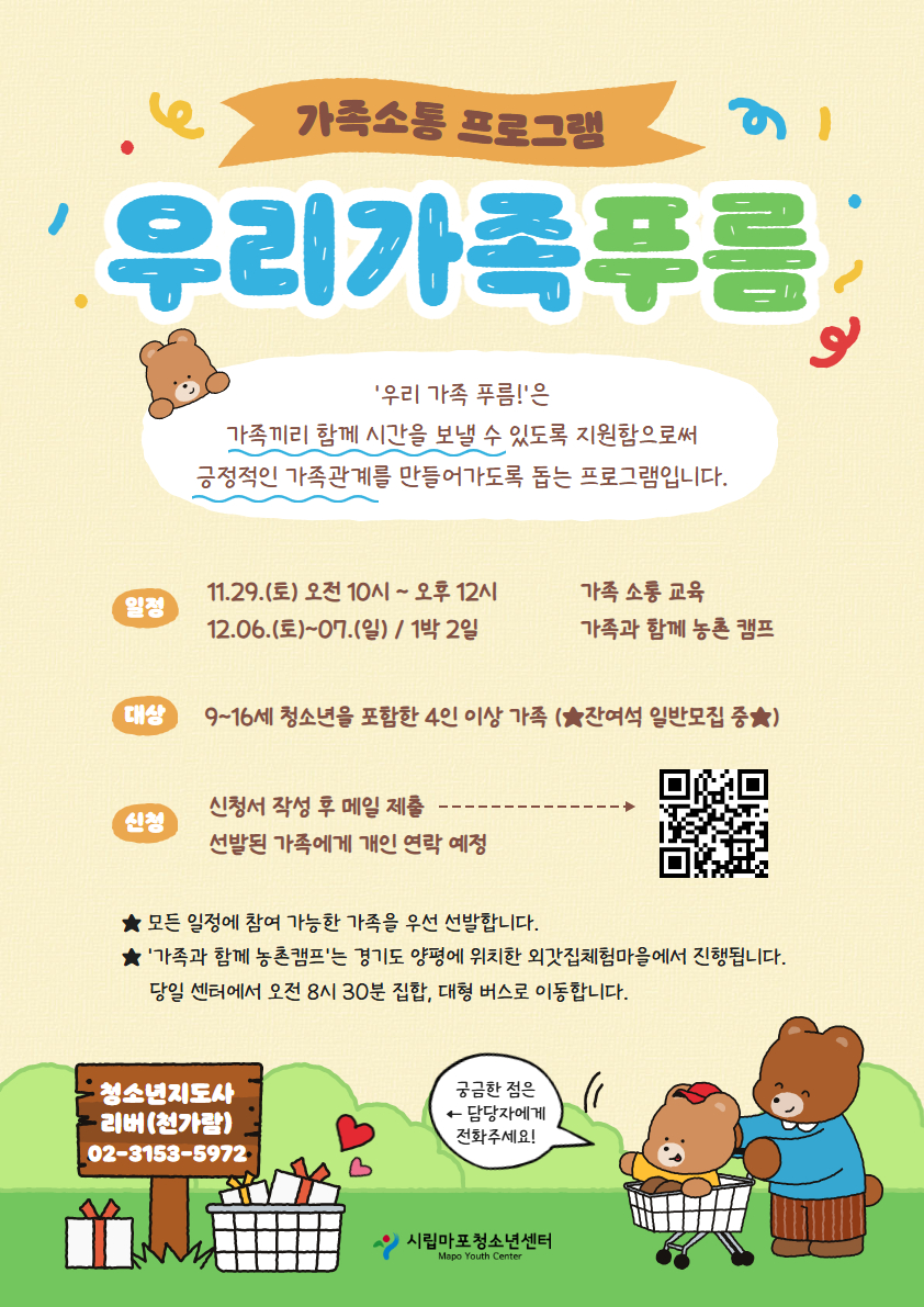| ÆÄÀÏ÷ºÎ | [½Ã¸³¸¶Æ÷û¼Ò³â¼¾ÅÍ] 2025³â °¡Á·¼ÒÅëÇÁ·Î±×·¥ [¿ì¸® °¡Á· Ǫ¸§] Âü°¡ °¡Á· ¸ðÁý ¾È³»(°øÅë).hwp | |||||