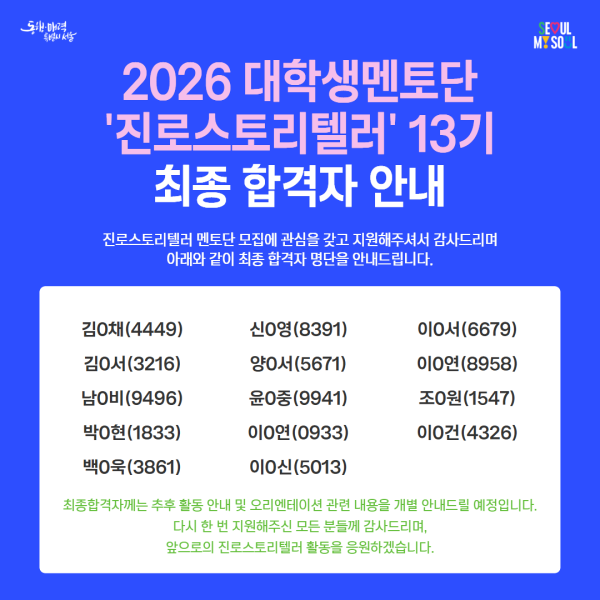 ÆÄÀÏ÷ºÎ 2026³â ´ëÇлý¸àÅä´Ü Áø·Î½ºÅ丮ÅÚ·¯ 13±â ÃÖÁ¾ ÇÕ°ÝÀÚ ¾È³».png